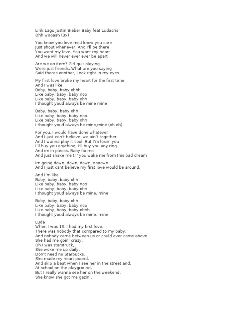 Lirik Lagu Justin Bieber Baby Feat Ludacris Entertainment General